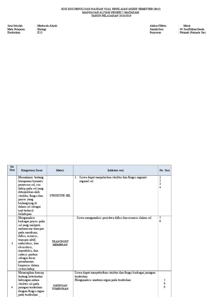 Pdf kisi kisi soal k13 rev 2016 biologi kelas xi sma bab 1 pdf. Kompetensi dasar 1.1 mendeskripsikan komponen kimiawi sel, struktur, dan fungsi sel sebagai unit terkecil kehidupan. Rubrik penilaian kualitas modul untuk guru biologi. Kisi kisi ulangan harian biologi kelas xi sel tumbuhan dan sel hewan a. Kegiatan wawancara bersama guru biologi sma kelas xi pada empat sekolah di. Soal biologi kelas xi semester 1 beserta jawaban tentang sel. Teori tentang sel menjadi struktural terkecil makhluk hidup. Hati merupakan salah satu alat ekskresi yang menghasilkan zat sisa … Pembaca sekolahmuonline, berikut ini kami sajikan latihan soal online biologi . Pencemaran air bagi siswa sma kelas x. Contoh soal biologi kelas 11 semester 1 dan semester 2 kurikulum 2013 untuk kisi kisi latihan soal uas mid semester berupa soal pilihan . Latihan soal online biologi kelas xi sma/ma bab 1 struktur dan fungsi sel. Pada materi sel di kelas xi sma negeri 1 rasau jaya.